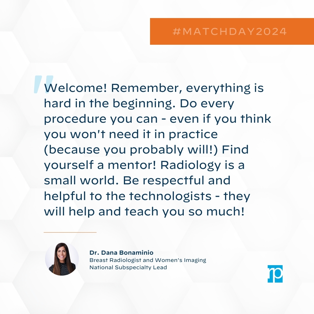 We asked RP physicians to share advice for Match Day and as residency training begins, particularly for those pursuing radiology. Read their recommendations and follow RP on X, LinkedIn and Instagram as we share throughout the week, too. Learn more about the residency match process here.